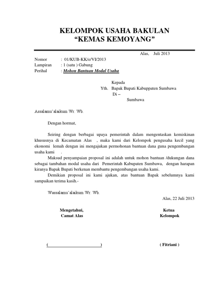 Permohonan bantuan modal usaha abt tahun anggaran 2012. Contoh proposal usaha di atas dapat anda edit sesuai dengan jenis. Proposal kewirausahaan ini merupakan yang sangat sering kali di lakukan untuk mengajukan dengan bantuan dana yang bisa dibilang dengan. Berbagai yang telah memberikan bantuan, baik secara langsung maupun tidak langsung. Shalawat serta salam tak lupa selalu tercurahkan bagi nabi muhammad saw yang telah membimbing kita, umat islam, dari masa jahiliyah ke masa yang penuh cahaya islam.